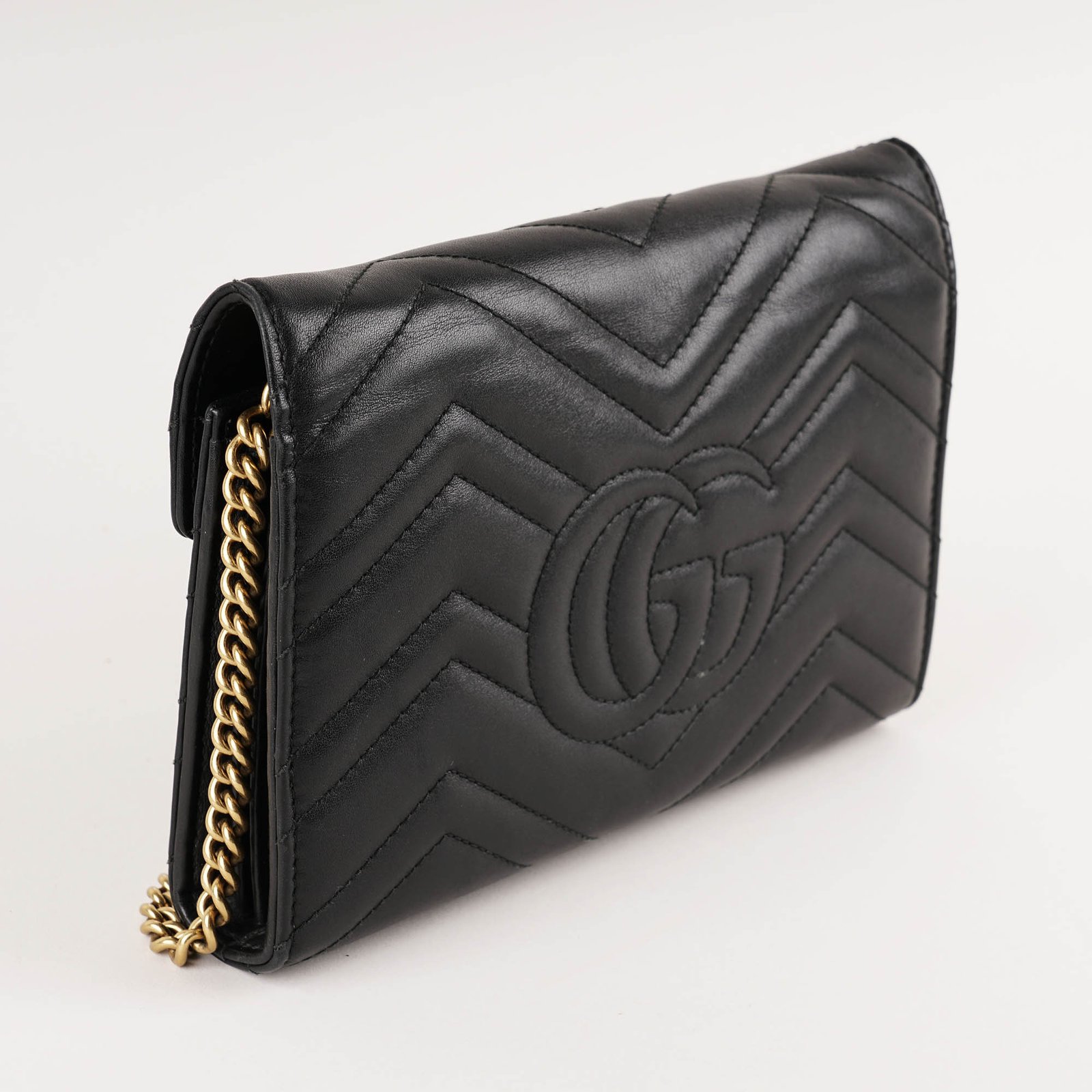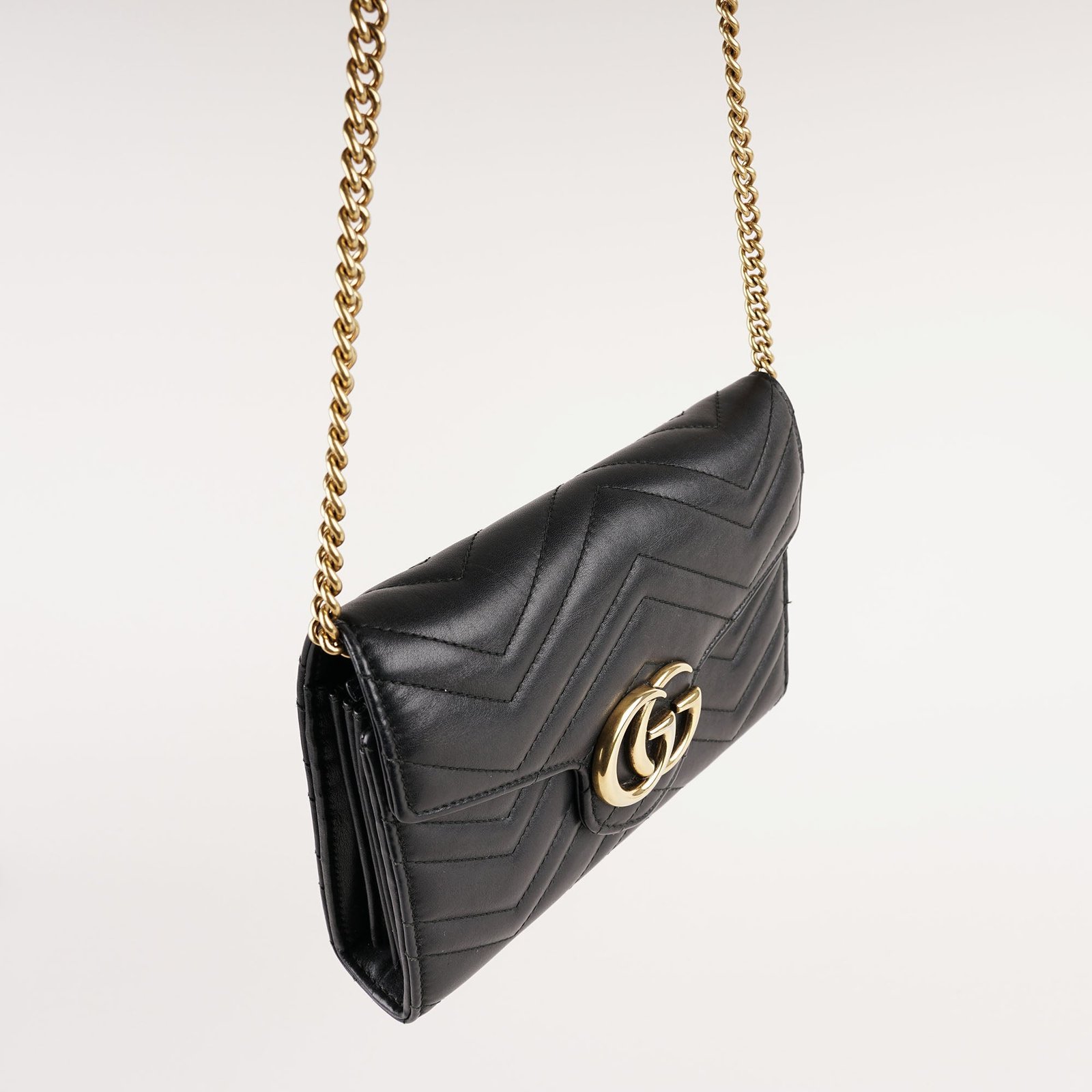 This is an authentic Gucci Marmont Wallet On Chain in Black Leather.