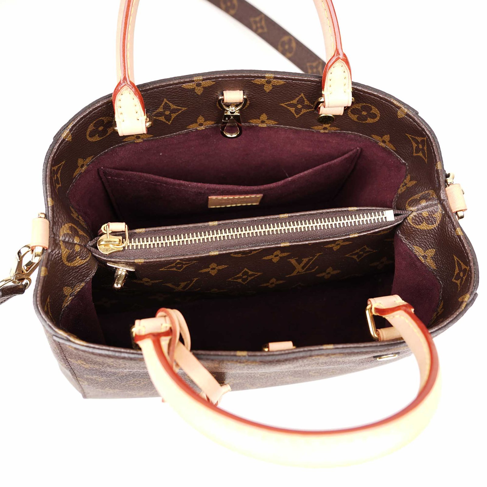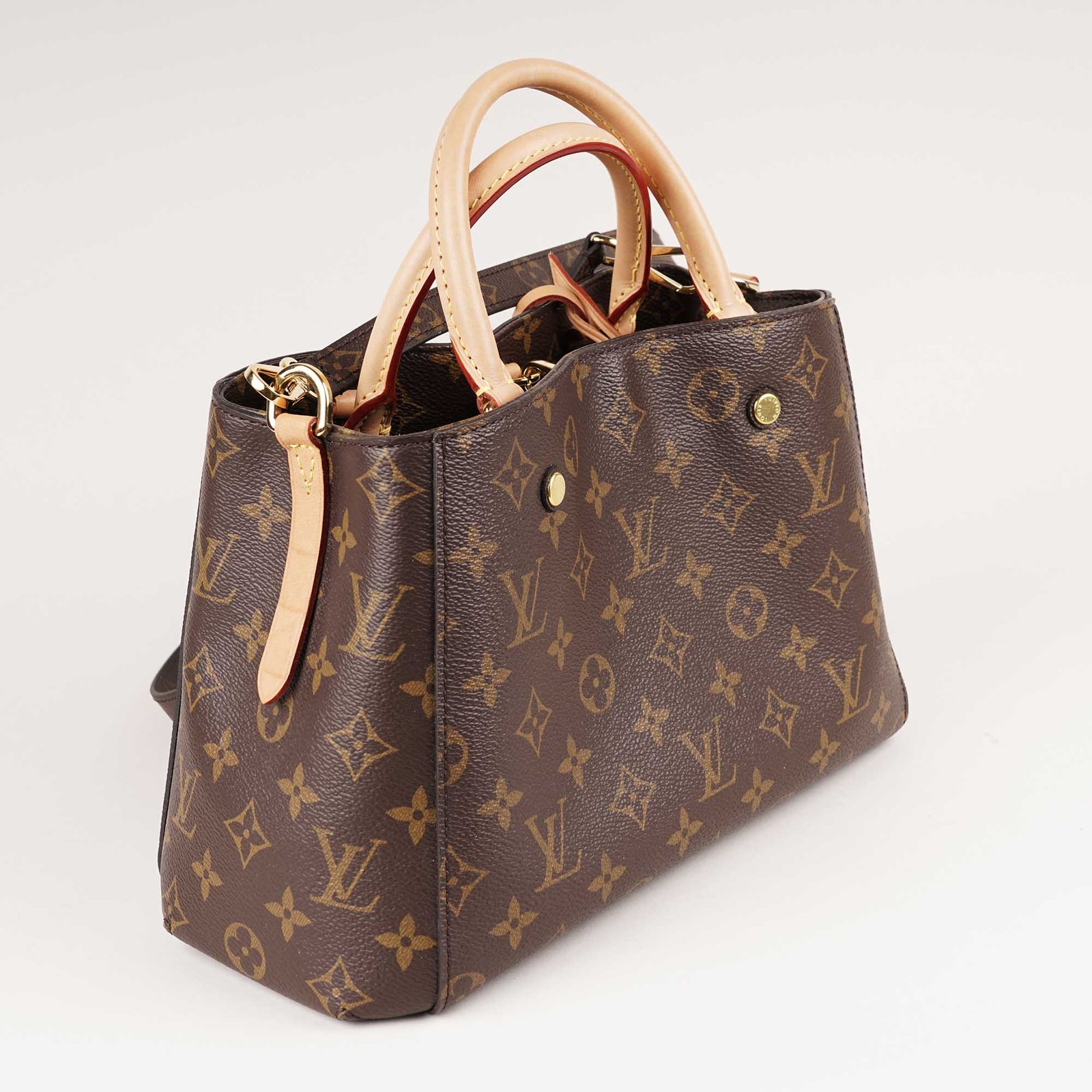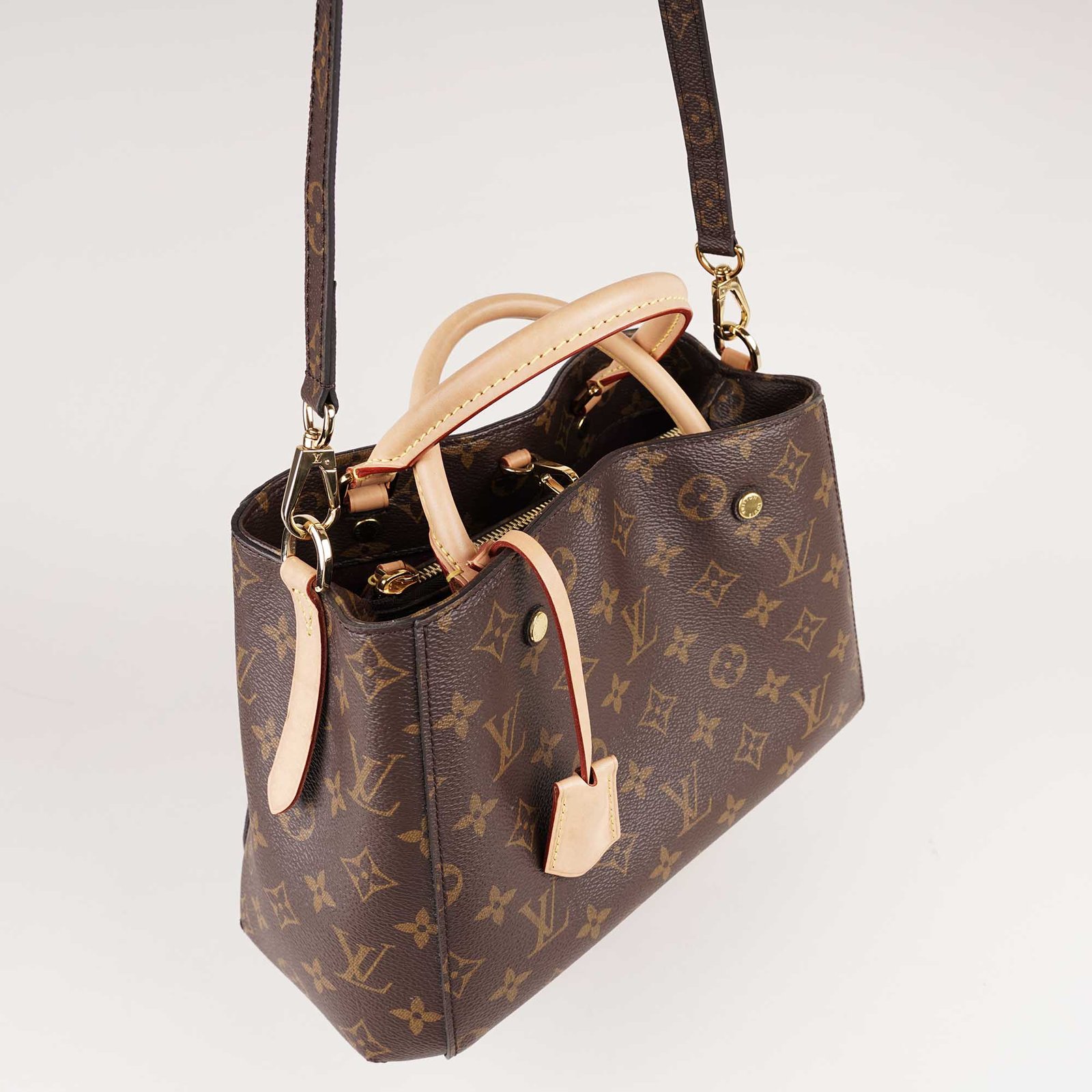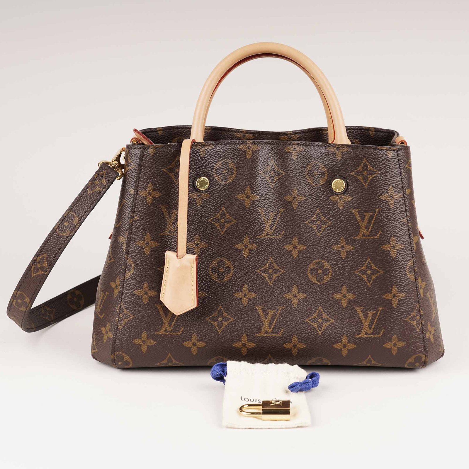 The Louis Vuitton Montaigne MM Tote Bag is a stylish and versatile handbag designed with classic and durable Monogram Canvas, rolled natural cowhide leather handles and details, as well as a removable shoulder strap in canvas. The spacious interior offers organization with a central zipper compartment and patch pockets. The Louis Vuitton Montaigne BB can be carried on your shoulders or by hand and is ideal for everyday wear. Elevate your look with this timeless, elegant and versatile bag. Don’t miss out!