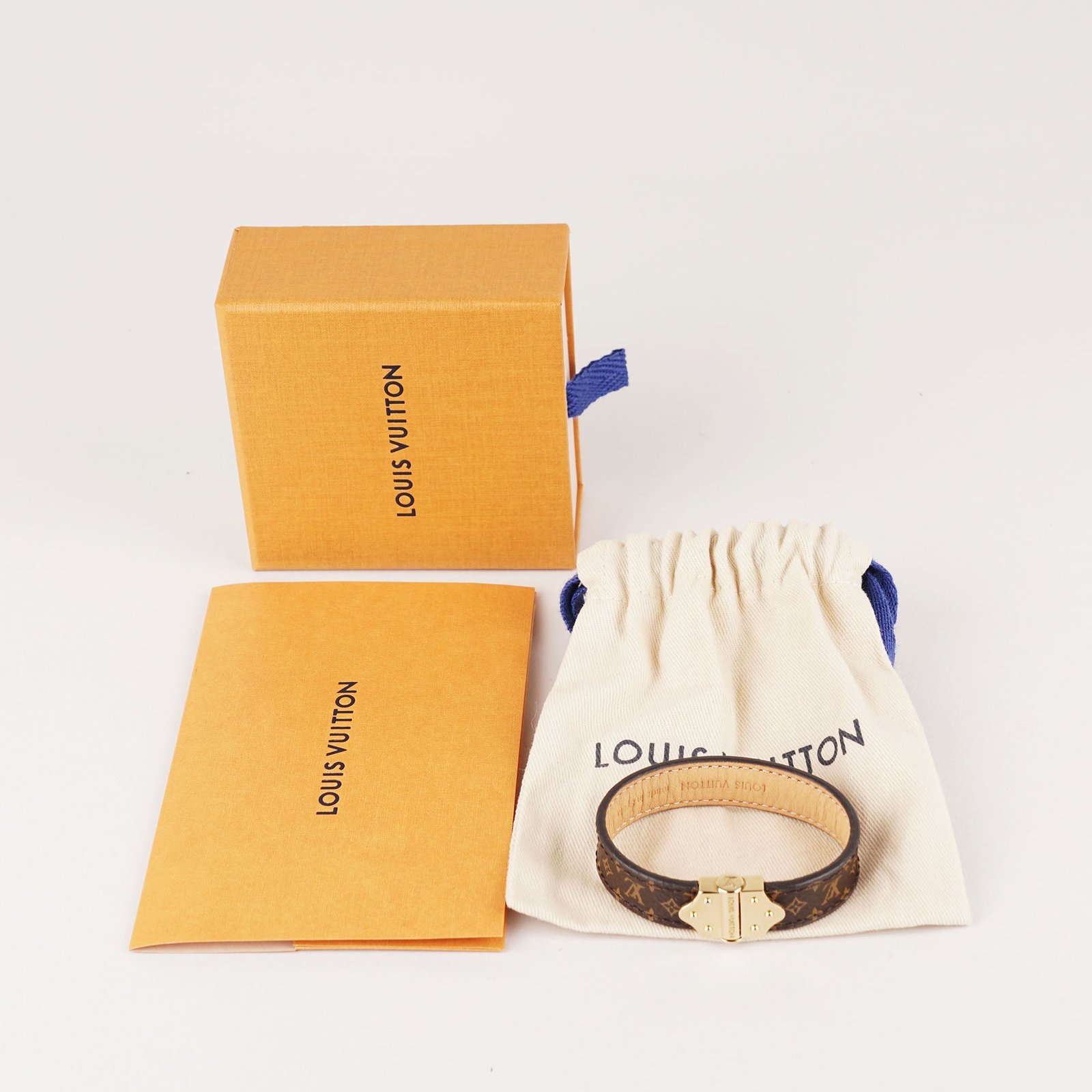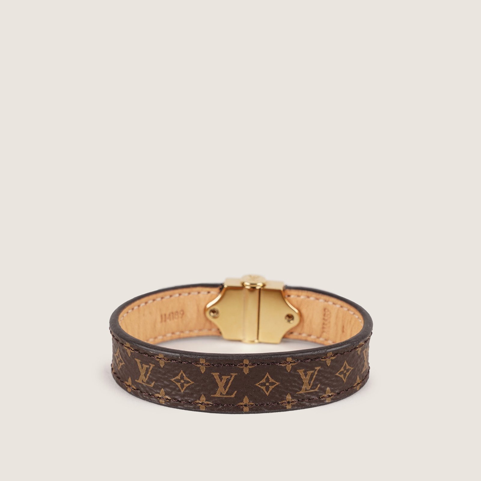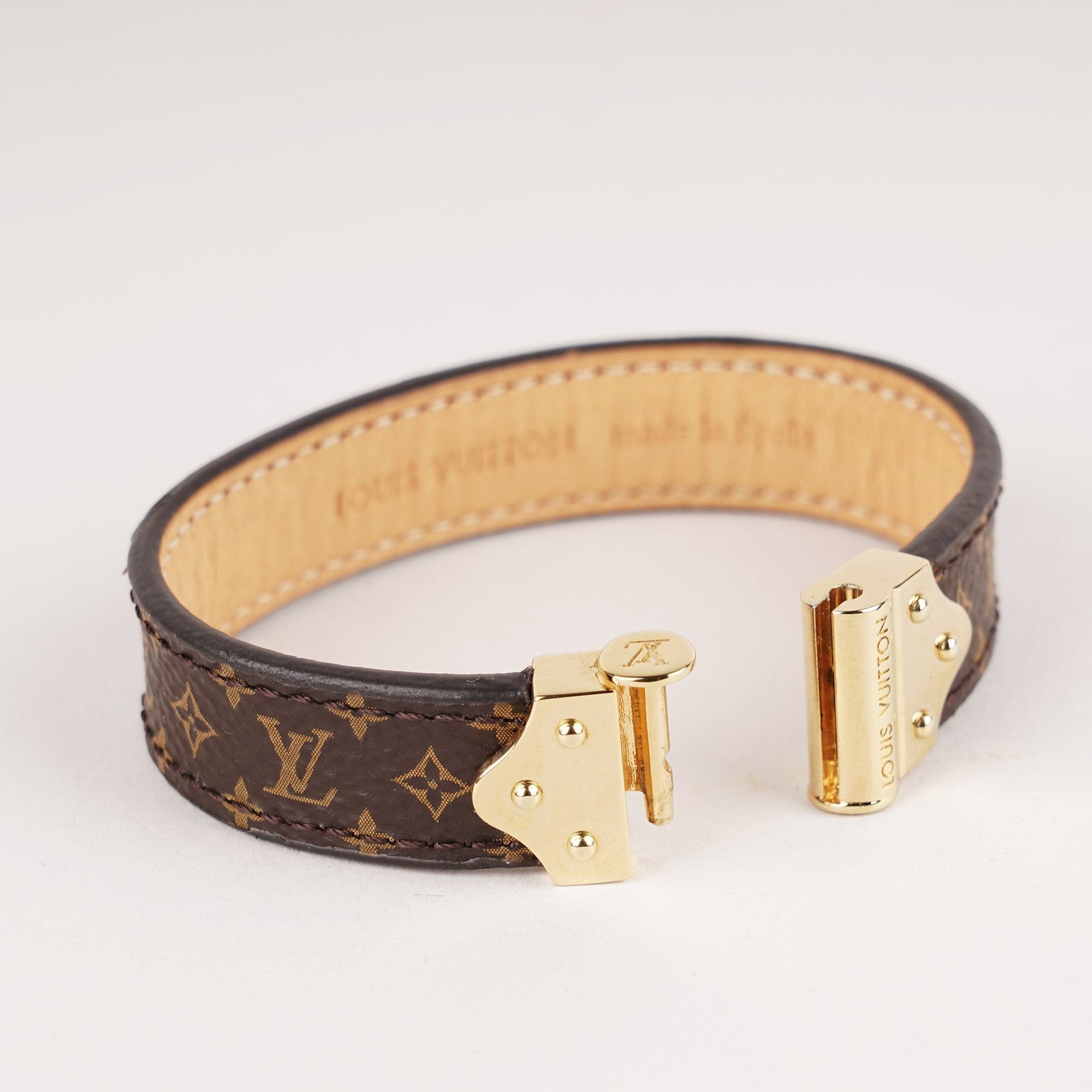 Enhance your style with the Nano Monogram Bracelet from Louis Vuitton, a timeless accessory crafted from Monogram canvas. The elegant golden clasp, engraved with the iconic Louis Vuitton signature, adds a touch of sophistication to any outfit. Don’t miss out!