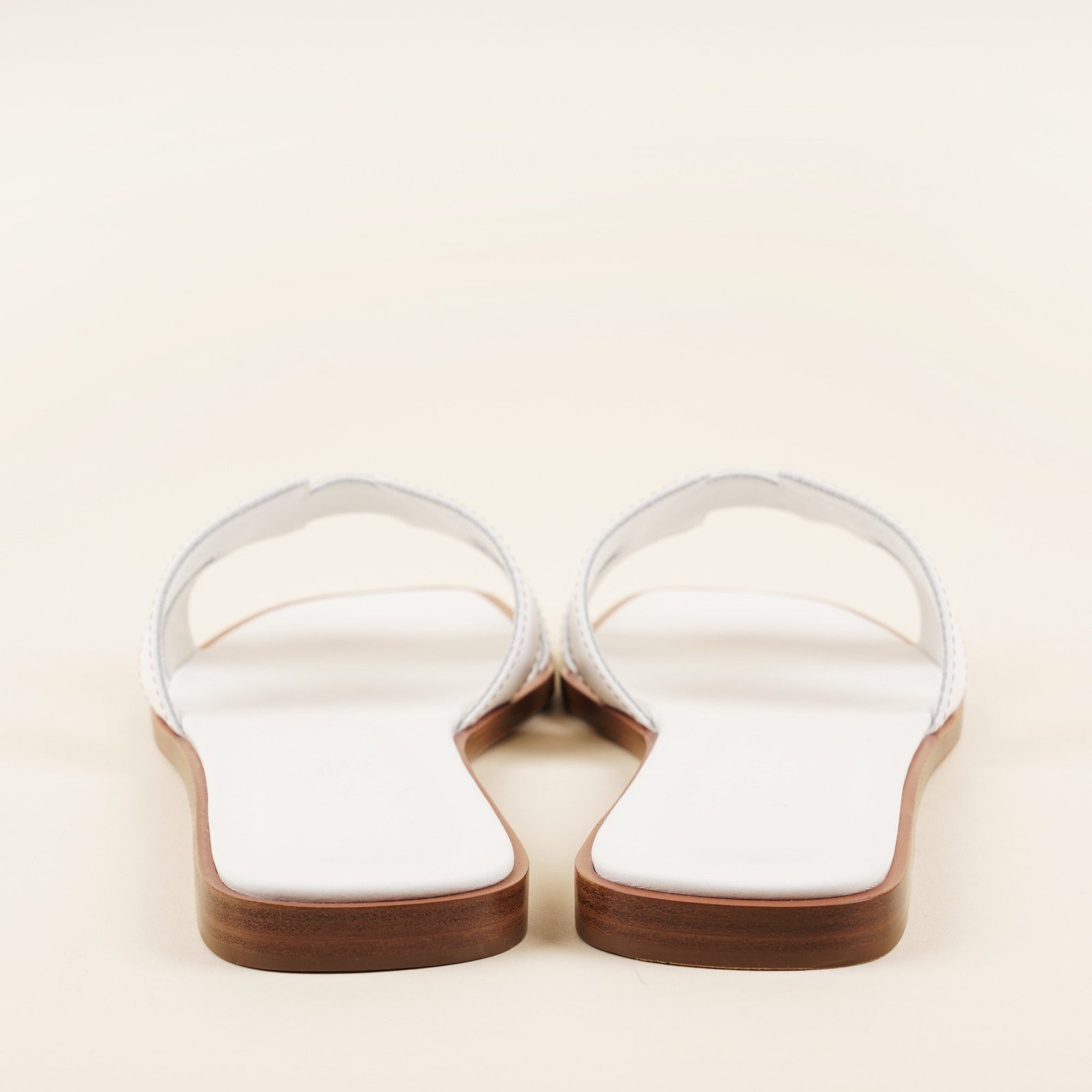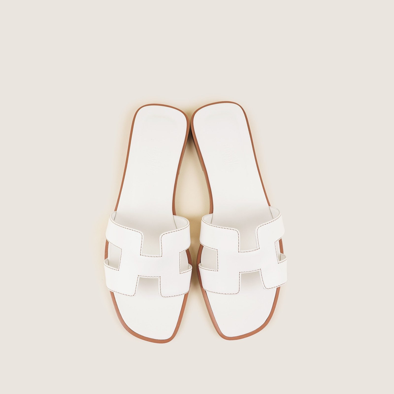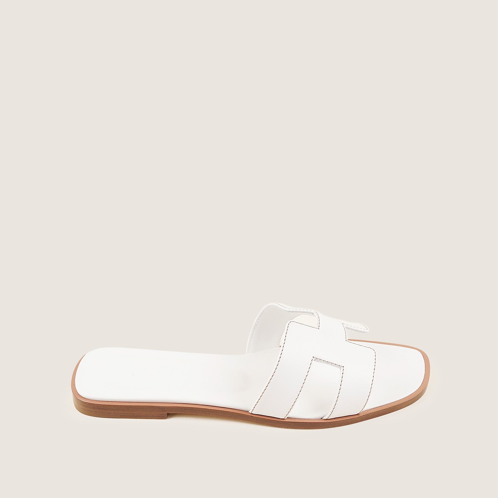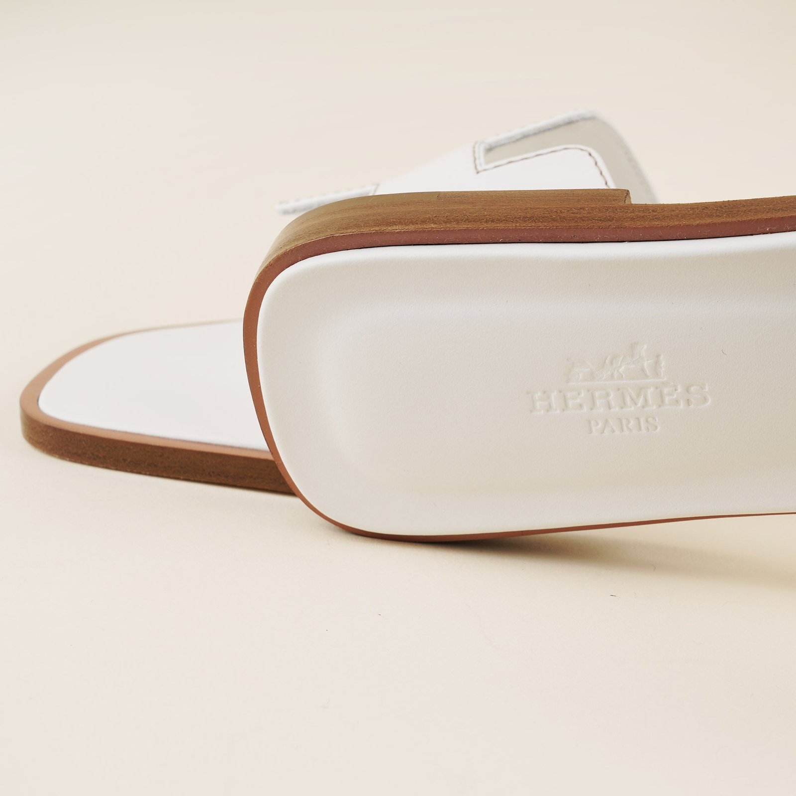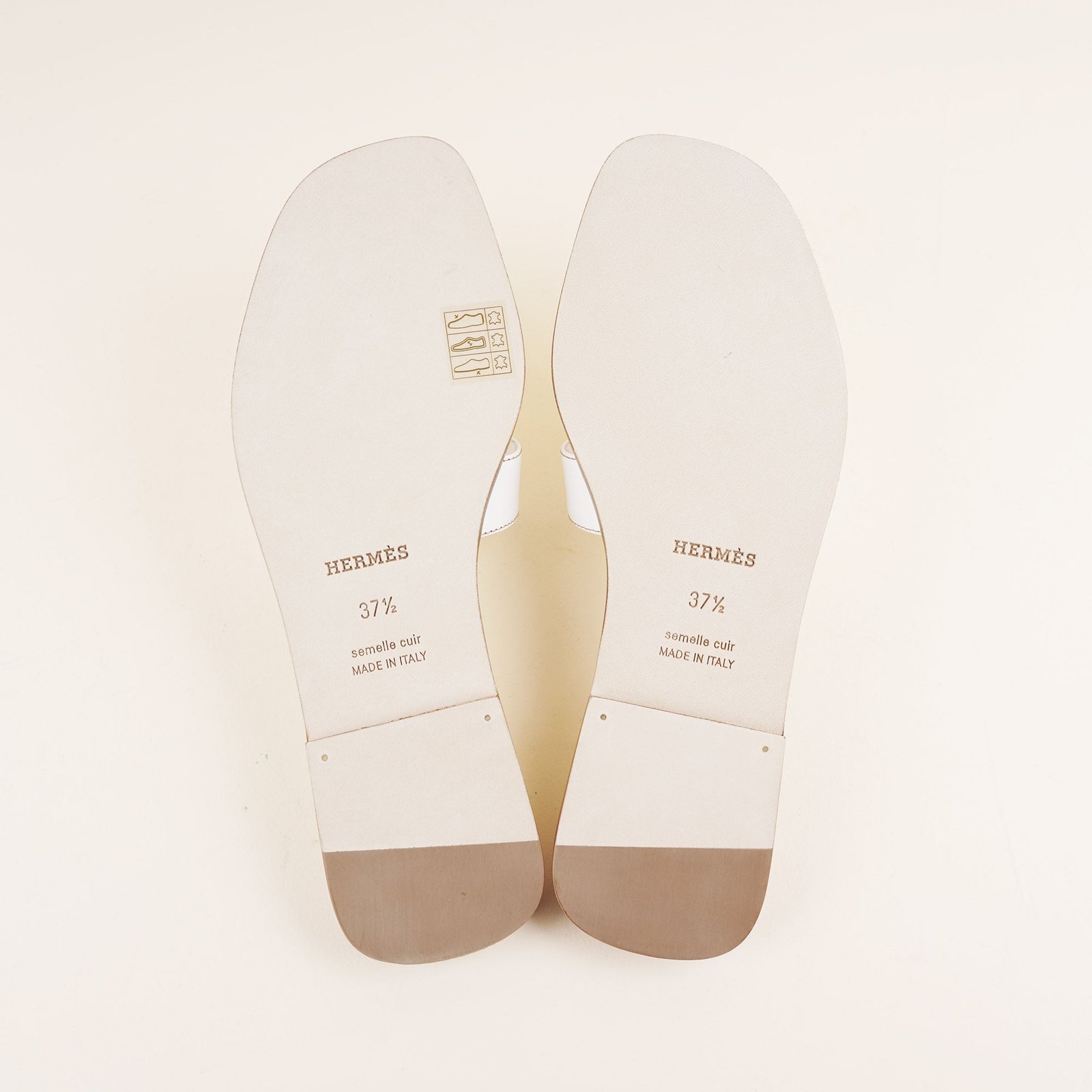 This is a pair of authentic Herm¨¨s Oran Sandals in White Box Leather, 37 ?.