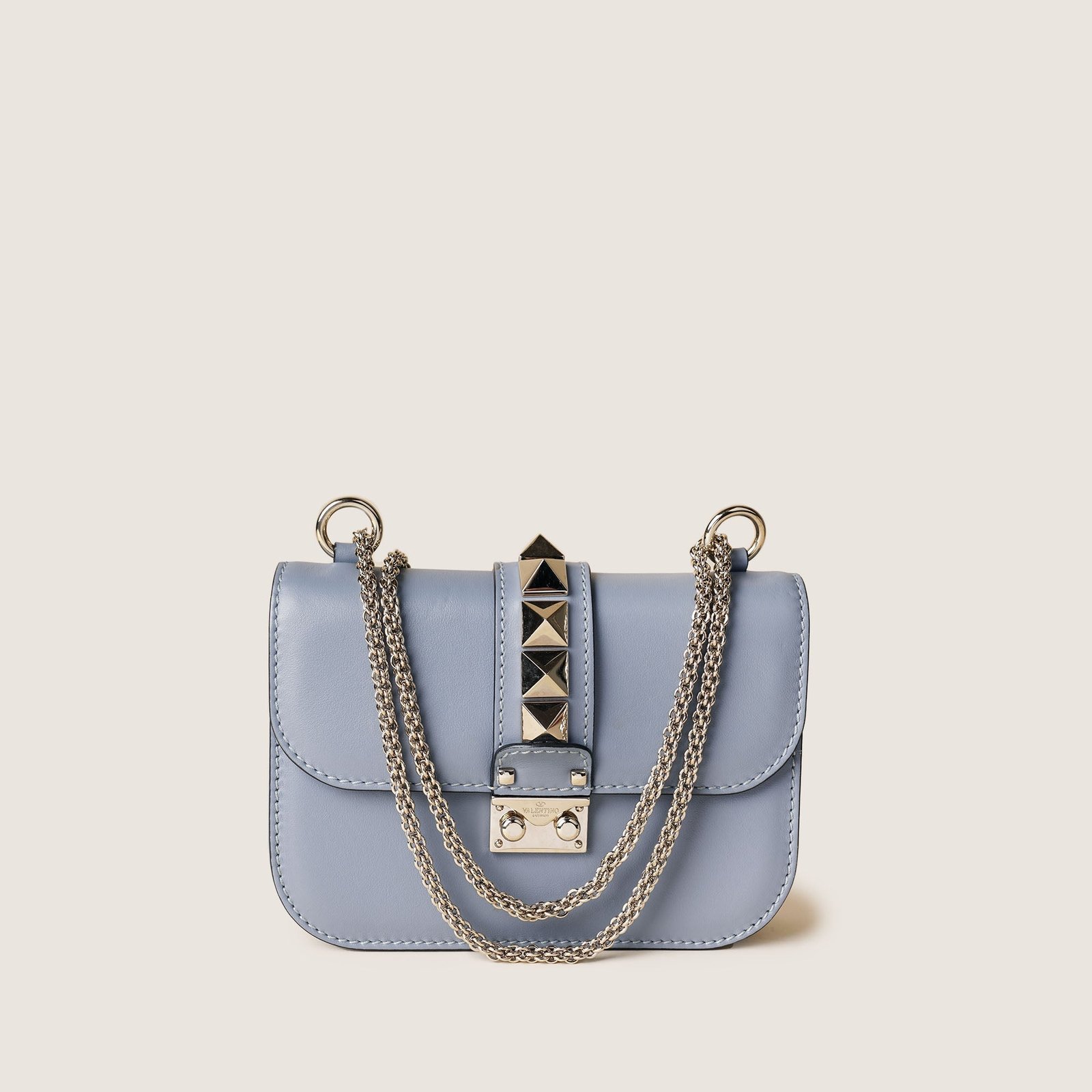 This is an authentic Valentino Small Glam Lock Shoulder Bag in Baby Blue Leather.