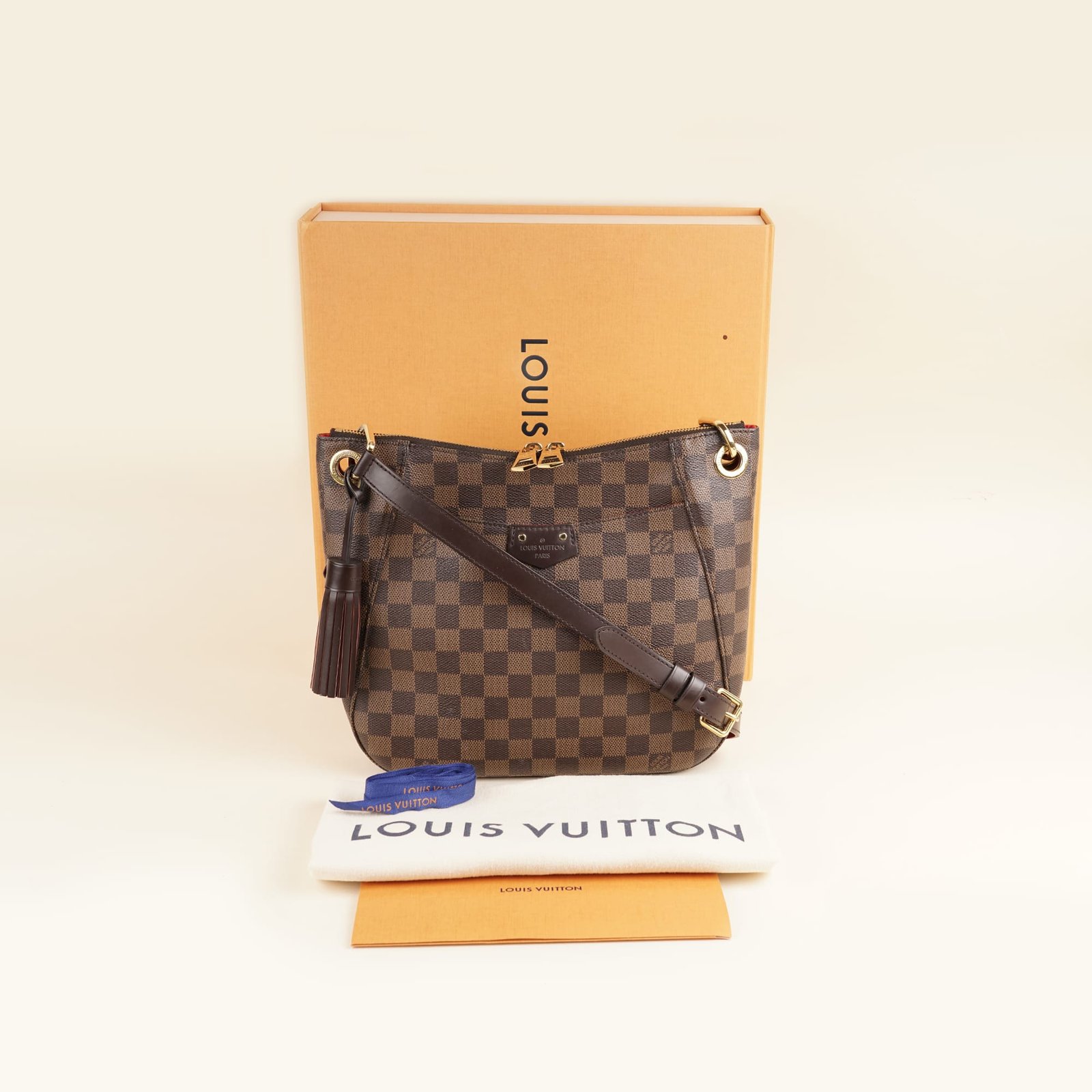 This is an authentic Louis Vuitton South Bank Shoulder Bag in Damier Ebene Canvas.