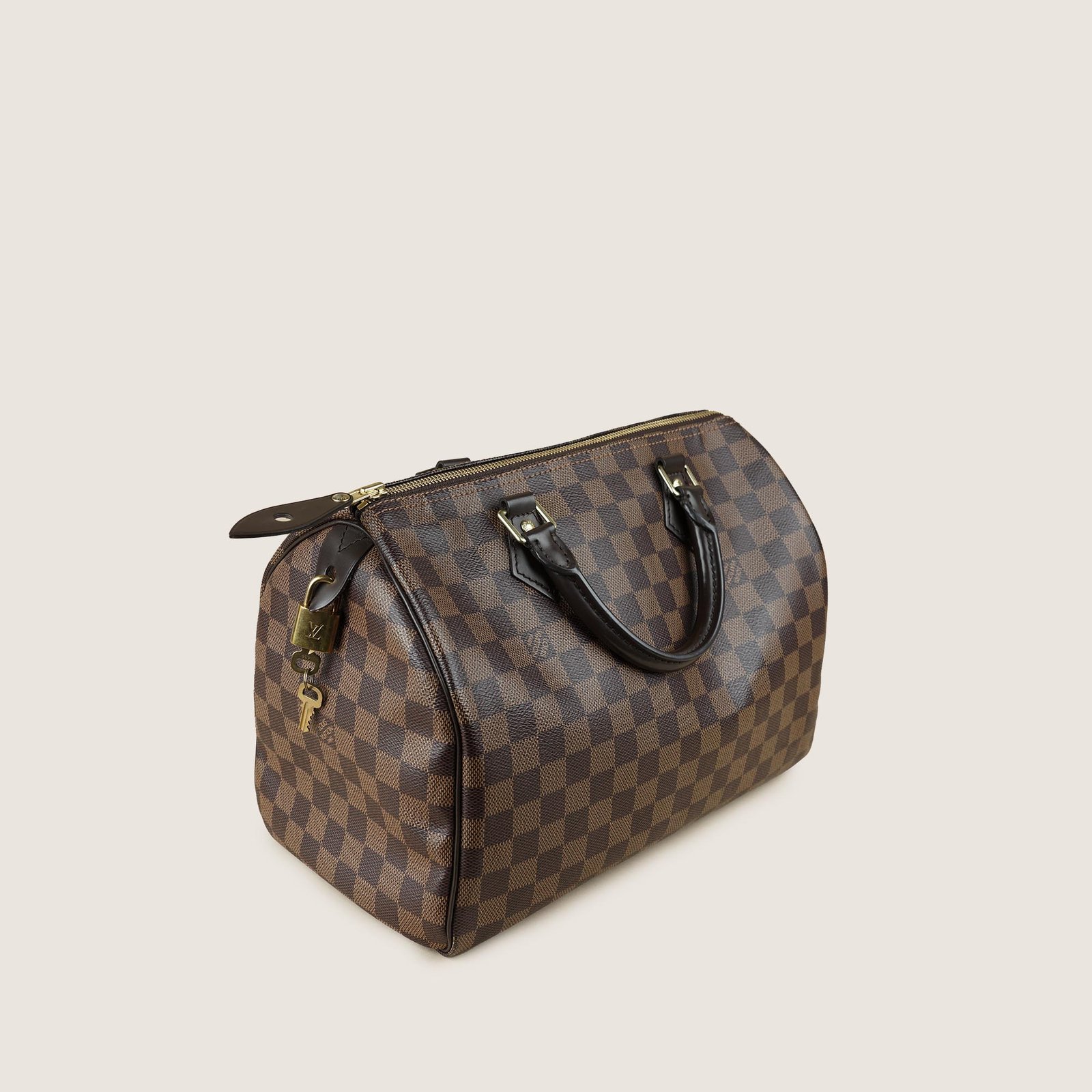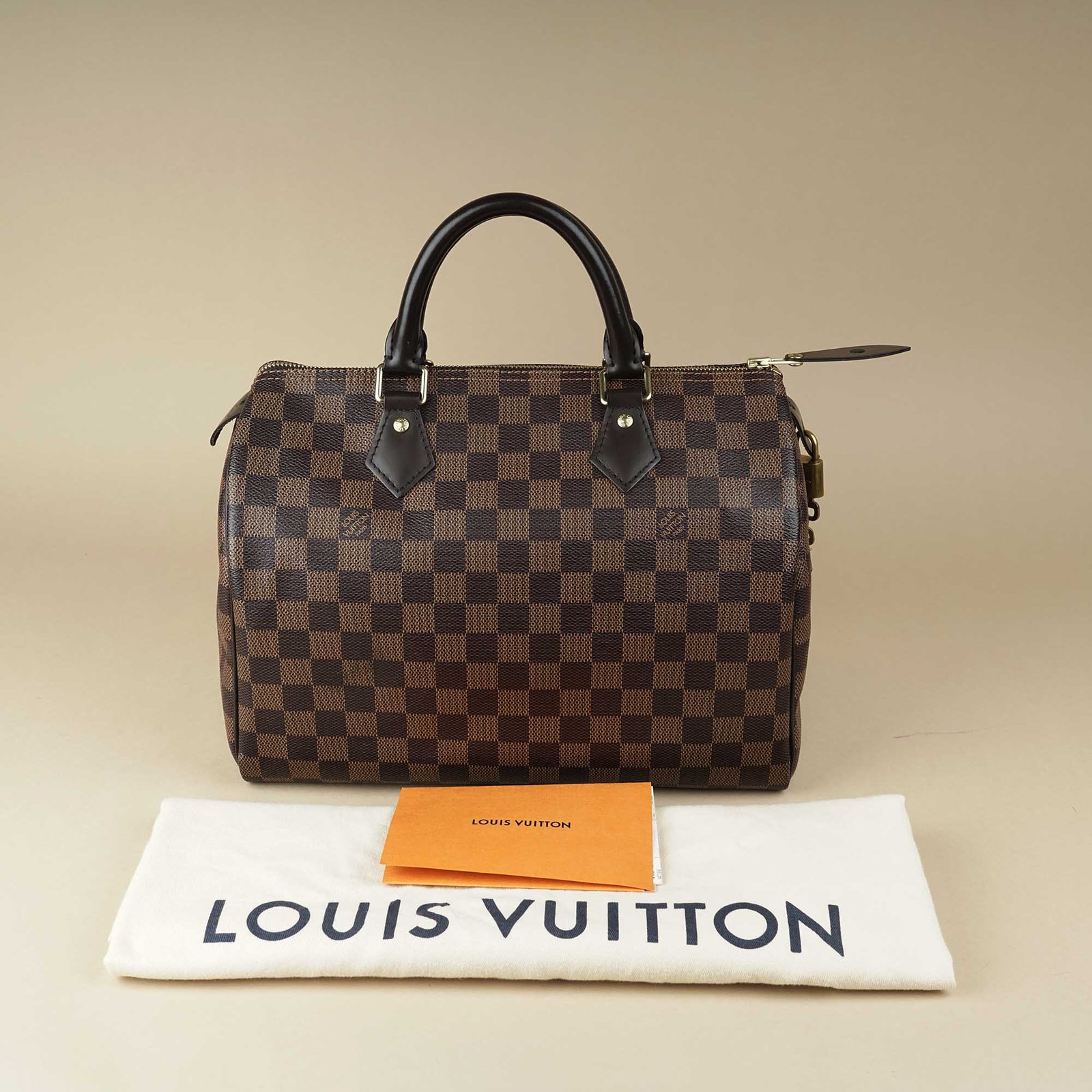 This is an authentic Louis Vuitton Speedy 30 Handbag in Damier Ebene Canvas.
