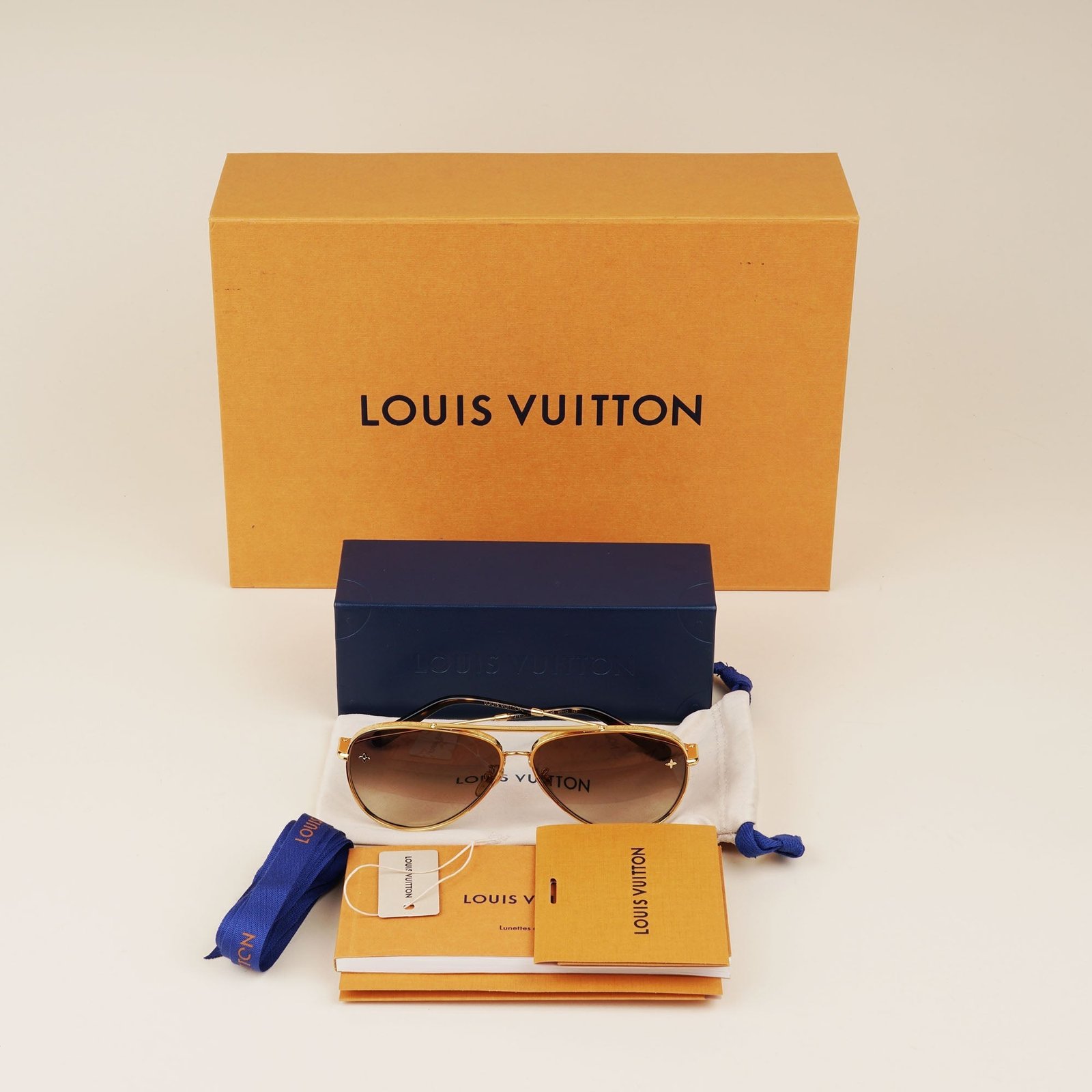 This is an authentic pair of? Louis Vuitton?The LV Pilot Sunglasses in Gold-Colored Metal.